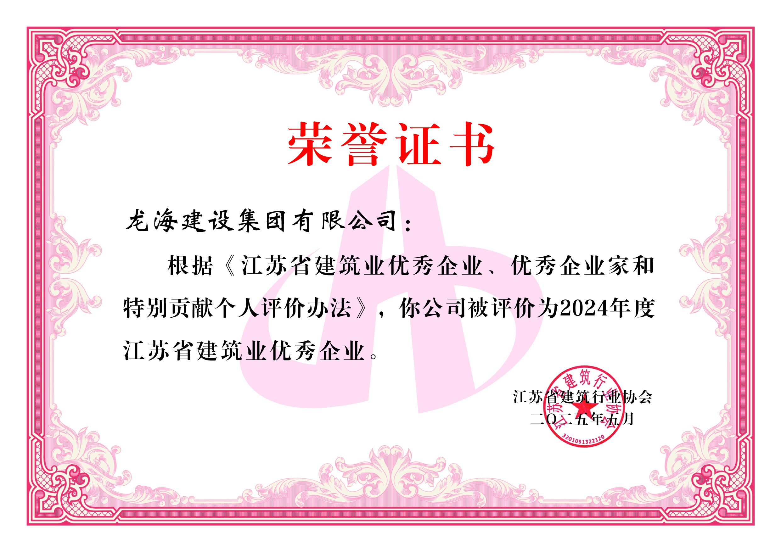 近日,在江蘇省建筑行業(yè)協(xié)會舉辦的年度評選中,公司憑借卓越的綜合實力、杰出的工程業(yè)績以及良好的企業(yè)信譽,成功榮獲 “2024年度江蘇省建筑業(yè)優(yōu)秀企業(yè)” 稱號。